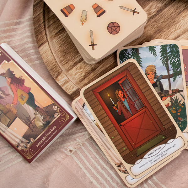 the creators behind the believe in your own magic oracle deck, bestselling author amanda lovelace & illustrator janaina medeiros, bring you cozy witch tarot, a deck that goes perfectly with your comfiest sweater, a lit candle, & a steaming mug of tea.