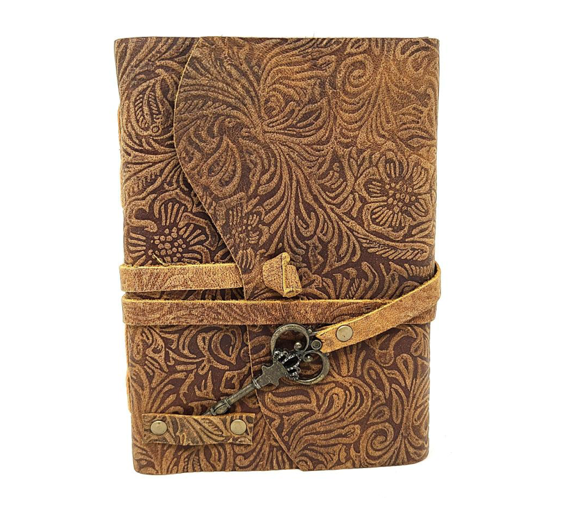 Get your hands on these unique, eco-friendly leather journals. Made with 100% recycled organic paper and featuring either a buckle or tie closure, each journal boasts approximately 192 pages of space for your musings.