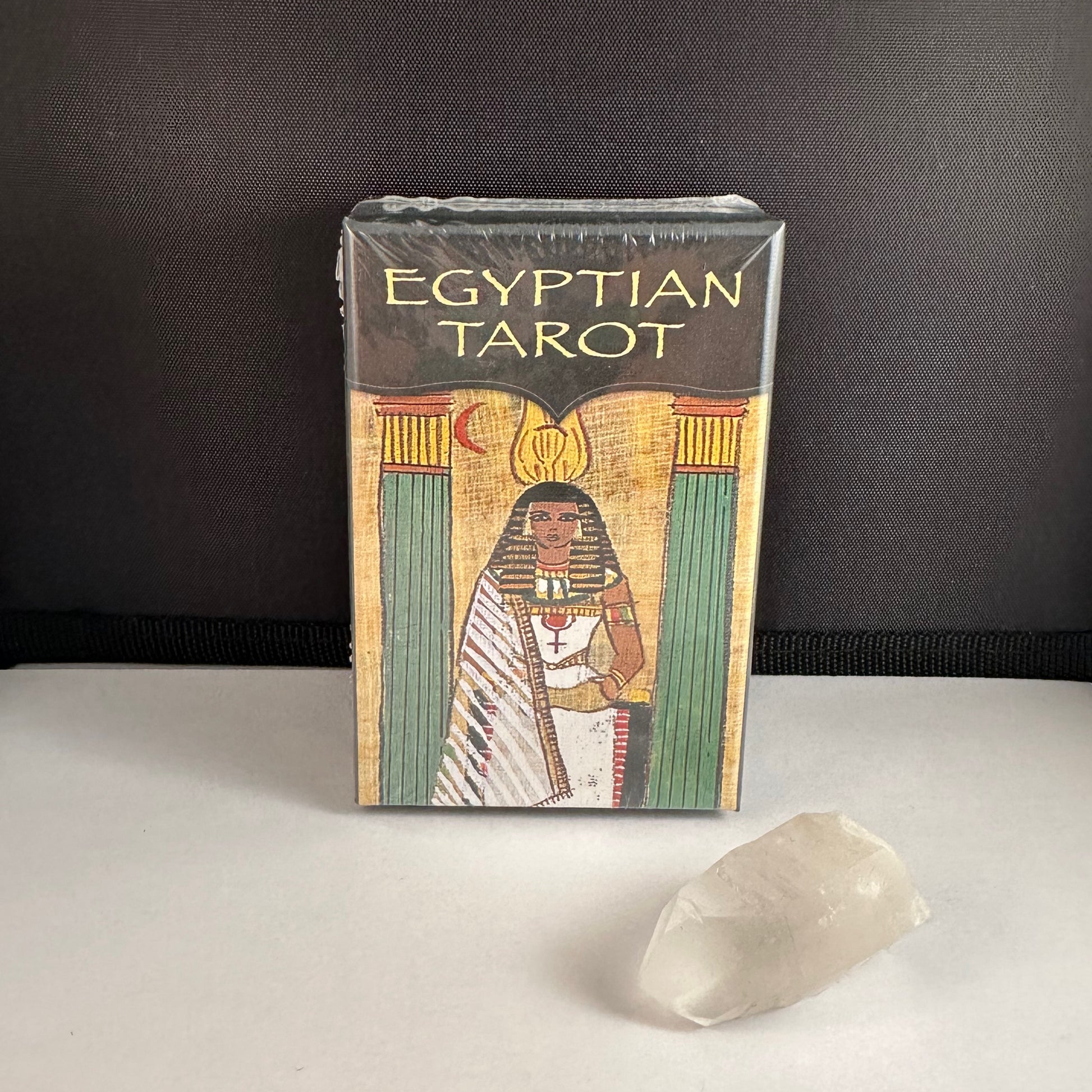 Now available as a mini deck! Each little card showcases tempera-on-papyrus paintings by Silvana Alasia, creating a beautiful melding of ancient Egyptian art style with the mysteries of tarot. To shape the interpretations, Alasia relied on the conceptions of Jean-Baptiste Pitois, who linked the tarot tradition to the legendary Book of Thoth. This mini edition of Egyptian Tarot Deck is printed on premium black-core card stock.