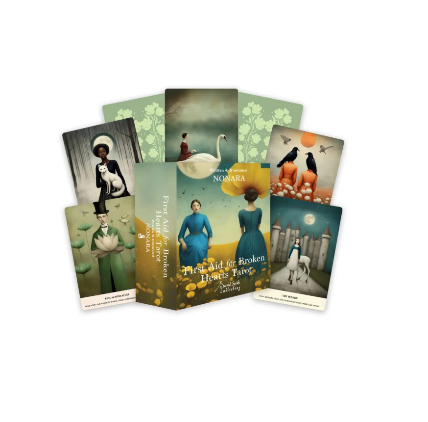 First Aid for Broken Hearts Tarot is a useful tool and consolation for those grappling with the shattered fragments of a broken heart and seeking immediate respite and healing. Being heartbroken is a perplexing experience, often leaving us with limited mental and intellectual resources to navigate the grief. Much like reaching for a first aid kit to address physical wounds and stop the bleeding, this deck is crafted with the same intention—to bring you solace and support during challenging times.