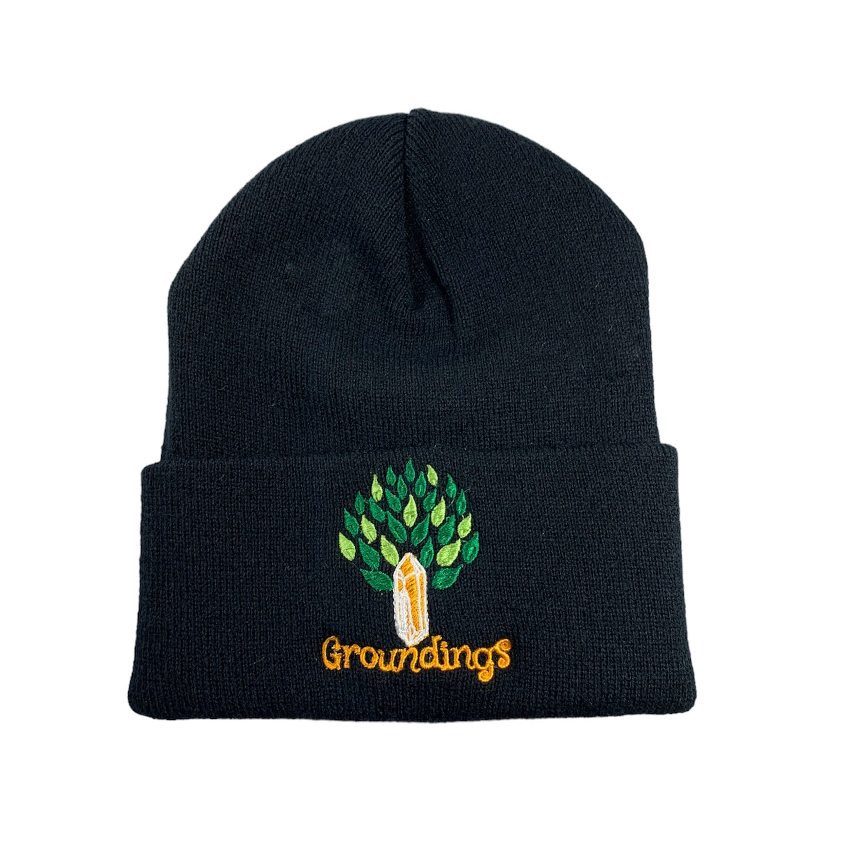 Show your love for Groundings while keeping that beautiful head of yours warm all winter long with a black knit beanie embroidered by a small artist, Meag from babe Gang Patches!