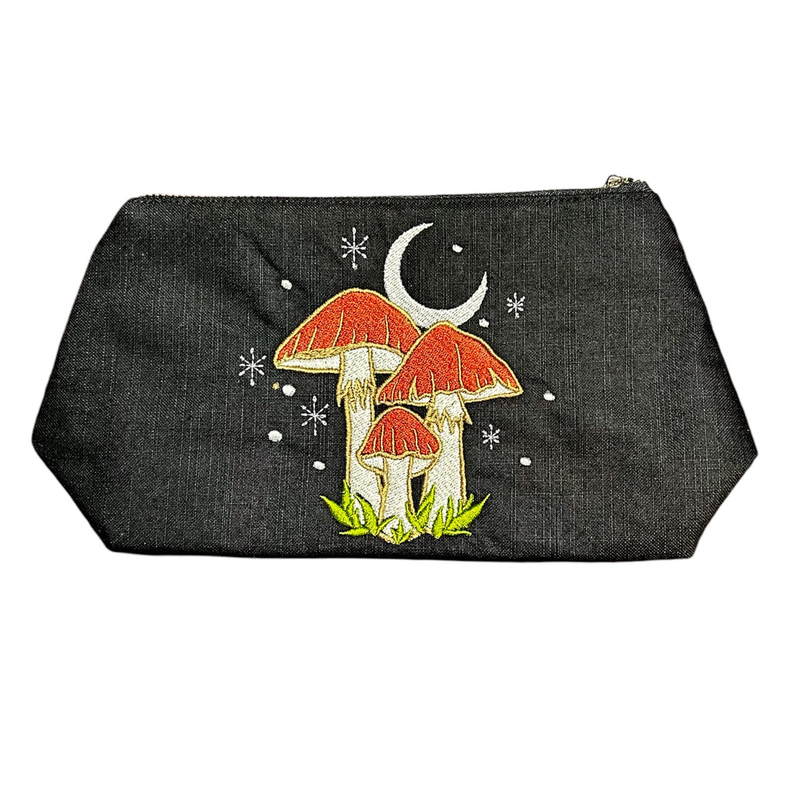 Mushroom Moon-Embroidered-Hand made-Cotton Lined-Stash Bag-Makeup Bag