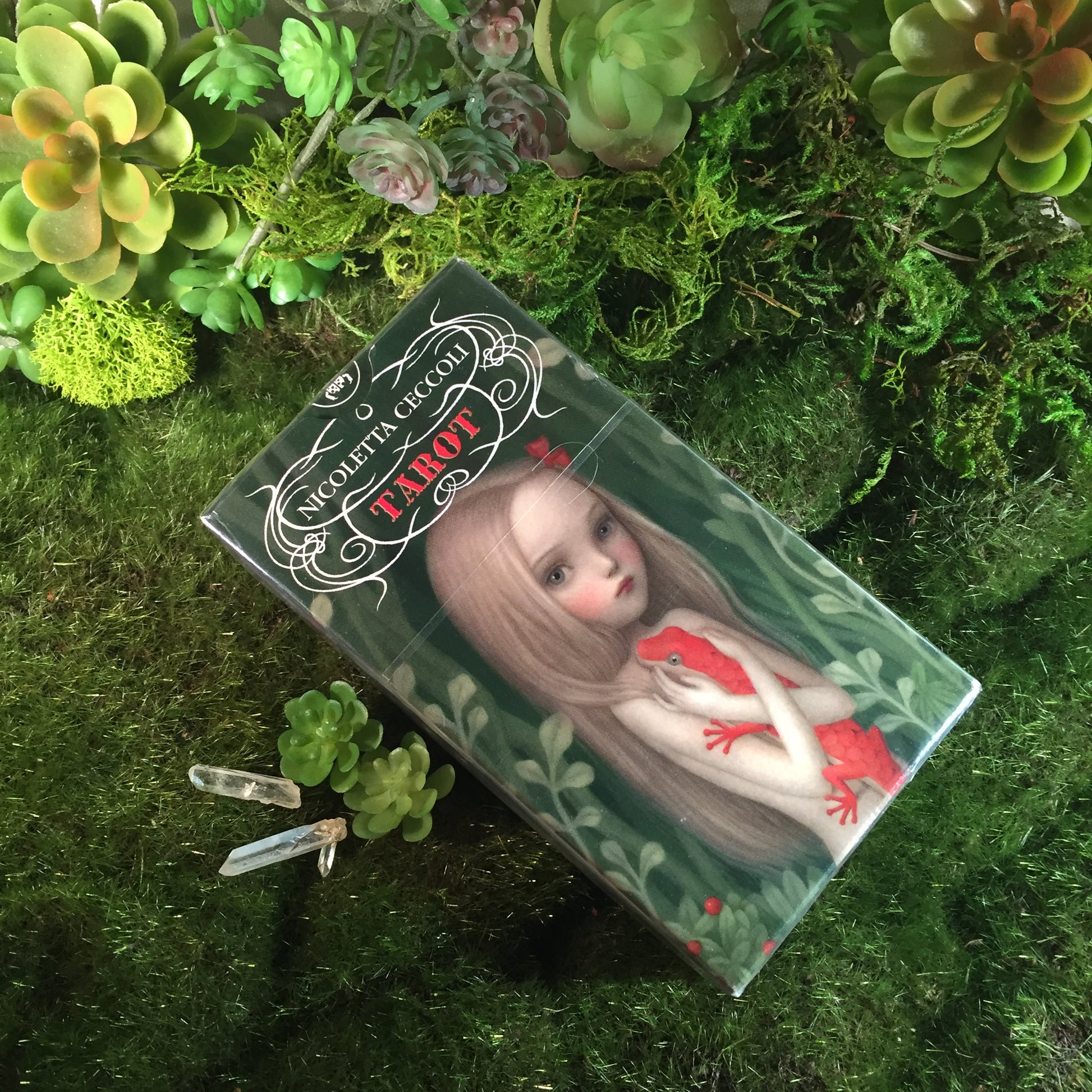 Celebrated illustrator Nicoletta Ceccoli draws in a style of provocative enchantment. Her tarot deck moves between harmony and madness, capturing a wholly unique element of eerie innocence. These cards provide insight into complex questions, where the dark mingles with the light and reveals the shades of gray that illuminate our most profound truths.