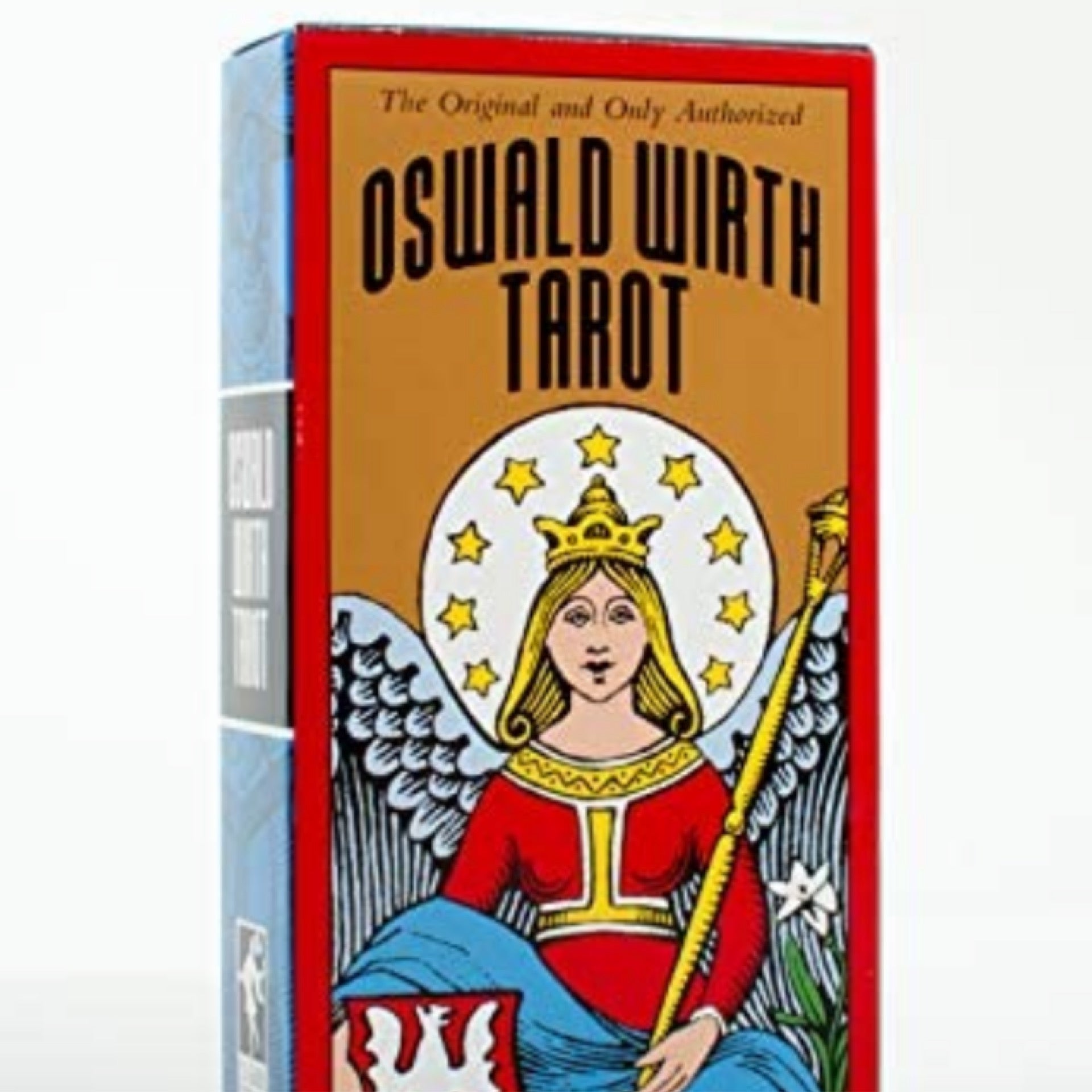 This historical tarot deck, created in the Marseilles style, is based upon the original designs by famous Swiss kabbalist and occultist Oswald Wirth. The 22 Major Arcana first appeared in 1889 in a hand-colored limit edition deck. The 22 Major cards have French titles and the Hebrew letters attributed to each card by Eliphas Levi, and popularized by Oswald Wirth. This authorized full 78-card deck is printed with vivid colors on gold background. The 56 Minor Arcana cards present the four traditional suits of Swords, Batons, Cups and Coins. The pack includes a booklet of commentary by Stuart R. Kaplan on the Oswald Wirth Tarot Deck.