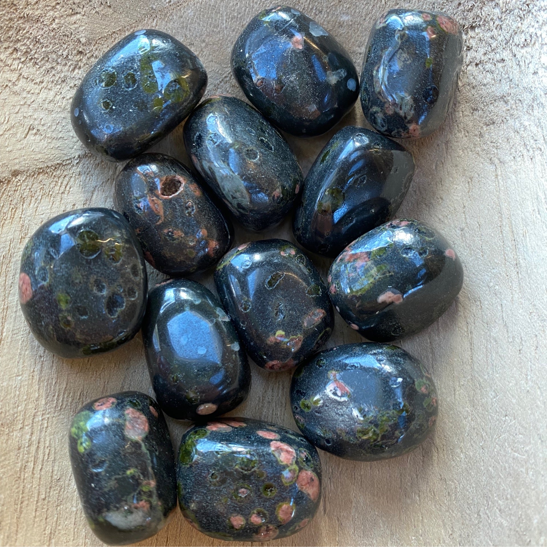 Red Snowflake Obsidian works on the solar plexus and base chakra. It creates a buffer around the aura, protecting and shielding the physical body. It helps promote clarity of thought and mind. It is known to absorb negative energies and needs washing frequently.