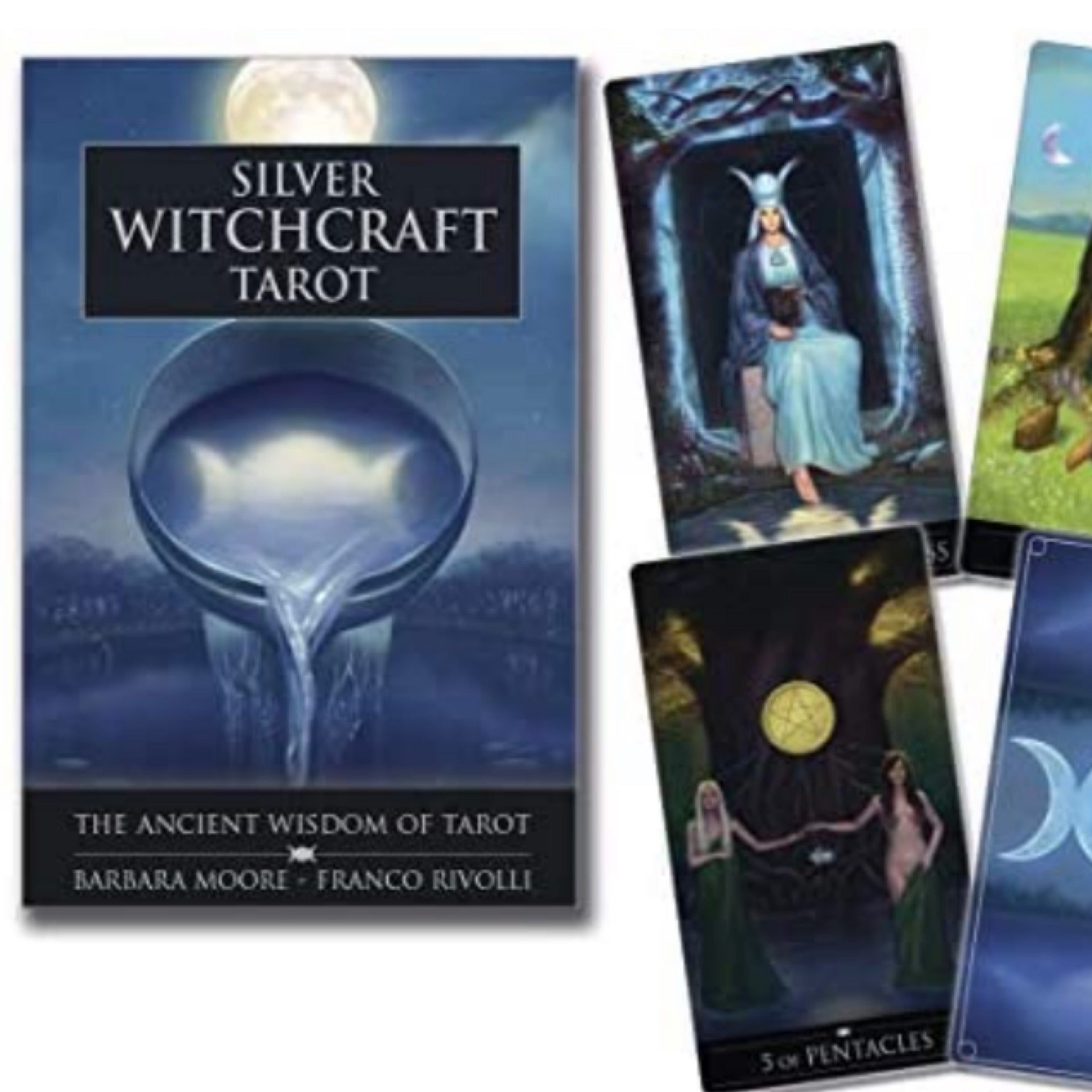 Expressing the wisdom and magic of the ages through Luna’s ethereal light, the Silver Witchcraft Tarot Kit combines the rich tradition of the Rider Waite tarot with modern Pagan symbolism, creating a unique and beautiful reading experience. Weaving the phases of the moon and the Pagan holidays into each suit, this exquisite deck offers knowledge of a material, emotional, and spiritual nature, whispering sagely into the ear of all who will listen.