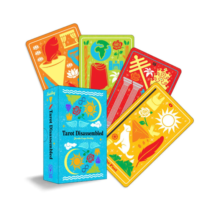 With a bright color palette and bold graphics, this unique seventy-eight-card full-color tarot deck deconstructs and reexamines the traditional symbolism found in the Rider-Waite-Smith tarot, opening the door for fresh insight into a classic. Tarot Disassembled allows the user to connect with the tarot in a completely intuitive way, free from any pictorial narrative around gender, skin color, age, size, ability, or any other human constructs.