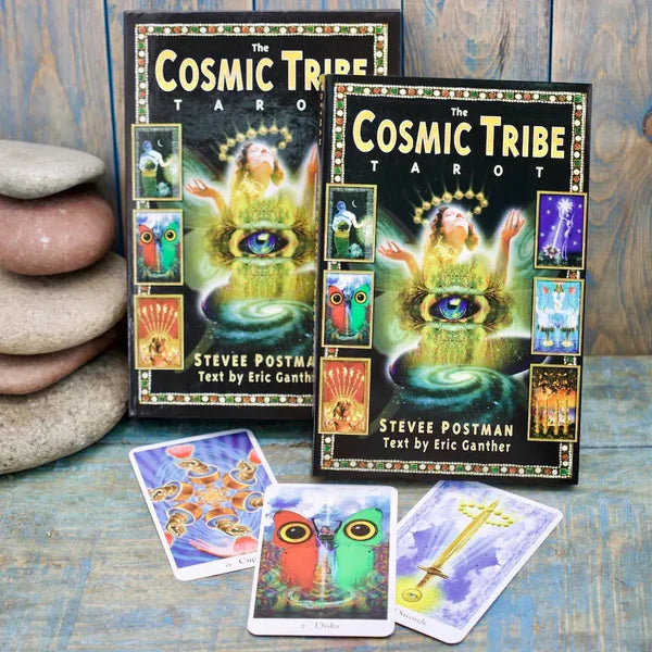 The Cosmic Tribe Tarot is the most revolutionary tarot deck to appear since Aleister Crowley's Thoth Tarot. Synthesizing classic archetypal imagery with state-of-the-art electronic wizardry, Stevee Postman has created a deck that maps the modern psyche like no other before. Drawing equally from nature, myth, psychedelics, and contemporary neopagan culture, The Cosmic Tribe Tarot speaks to the fears, hopes, and desires of a new generation. Without abandoning the traditional structure that has made the tarot a successful divination tool for centuries, Postman charges his deck with an erotic, mystical energy, showing that the modern tribal movement is at heart a spiritual one. Never before has a tarot so boldly reconnected the contemporary soul to the eternal cosmos.