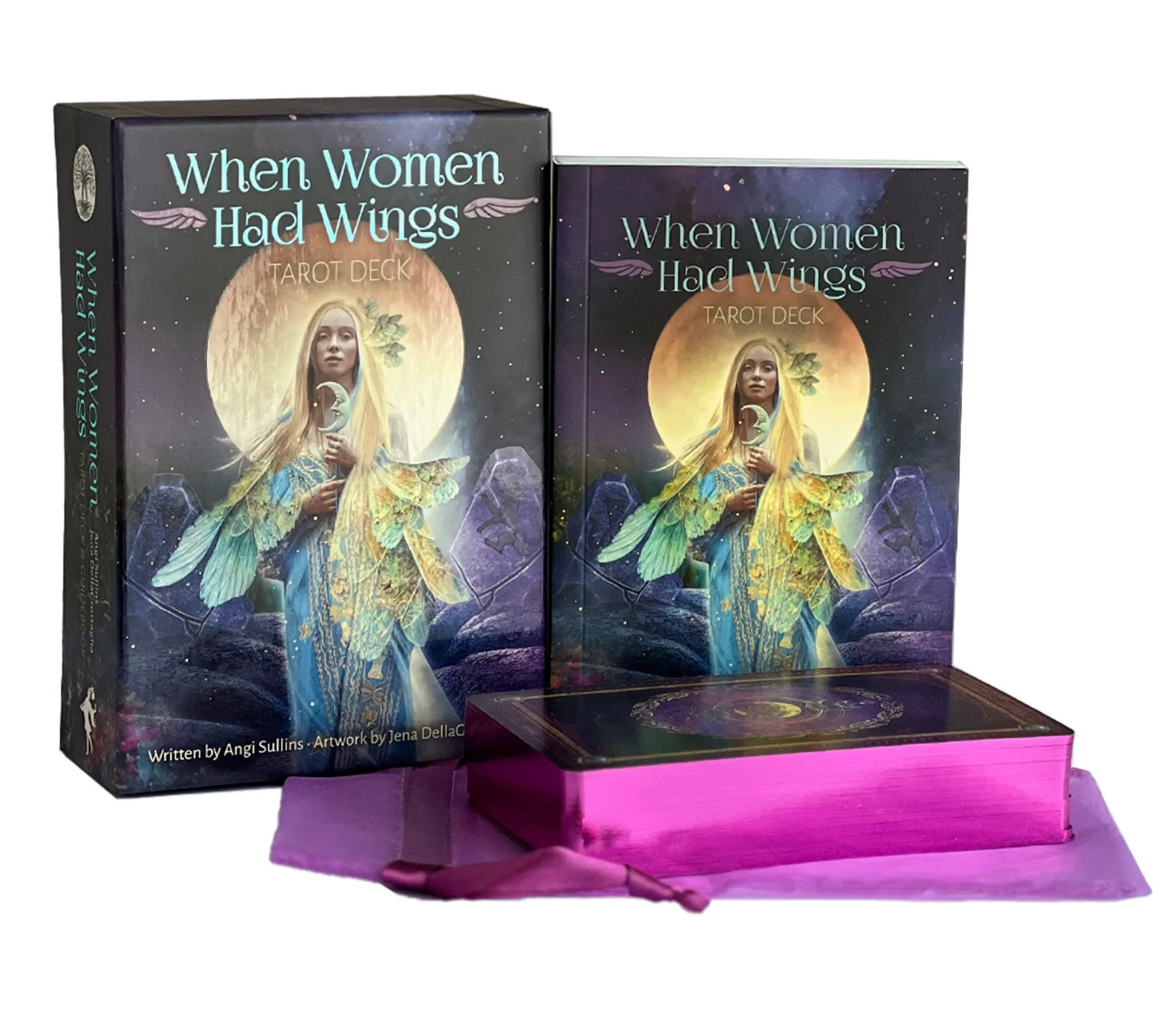 You may not be able to see or touch them. You may have lost your memory of them. But, you do indeed have wings. They may be fluttering just under the surface of your skin, or folded deep in the realm of your psyche. But, they are as real as your breath and just as necessary. Your soul is winged and can fly daily. Your spirit is designed to soar. This tarot deck is aimed at bringing you fully into that expansive experience. Use the 78-card deck, guidebook and portal of poetry to reclaim your wings. Unfold. Unfurl. It’s your turn to take to the sky. Includes 78 purple gilt-edged cards, an organza drawstring pouch, and a vividly illustrated 198-page guidebook.